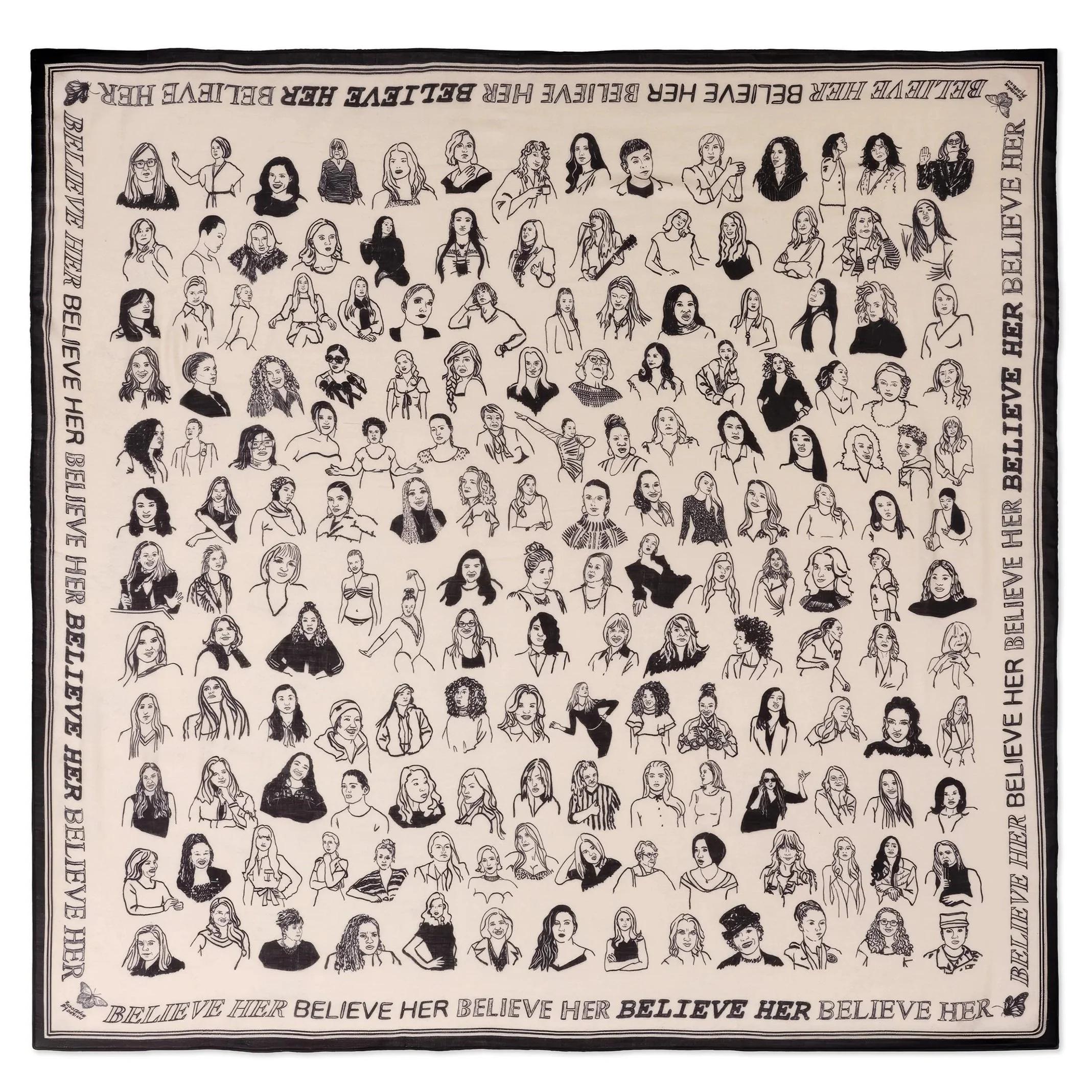 This scarf features 165 hand-drawn portraits of women who have spoken truth to power- often at great personal risk.